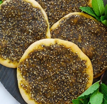 Za'atar manaqeesh is een heerlijk en traditioneel mediterraans platbrood dat rijkelijk besmeerd is met za'atar en olijfolie. Het is een populair ontbijt- of lunchgerecht en kan ook dienen als een smakelijk tussendoortje. Hier is een eenvoudig recept om za'atar manaqeesh thuis te maken.